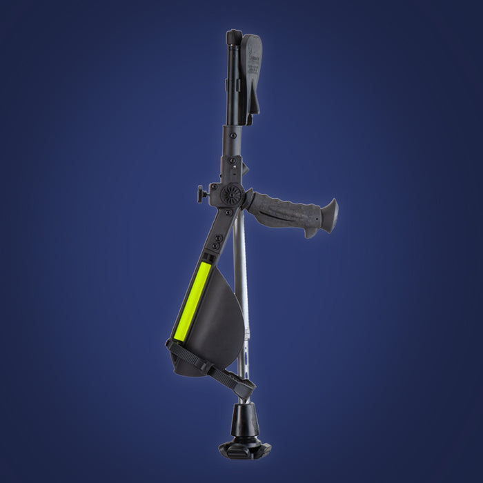 Featuring a patented shock absorption system, fully adjustable height and forearm length, built-in knee rest, LED flashlight, and a safety alert horn, this crutch is engineered for performance in real life. The ergonomic handle and padded cuff reduce strain on hands and joints, while the patented ErgoCap tip ensures maximum stability on any surface.